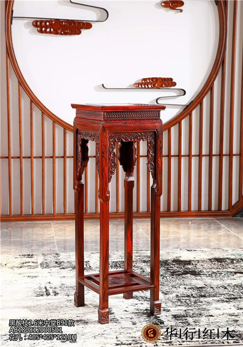而現在,紅木花幾已經進入尋常人的家里,成為一件體現主人品位與文化涵養的家居擺設。