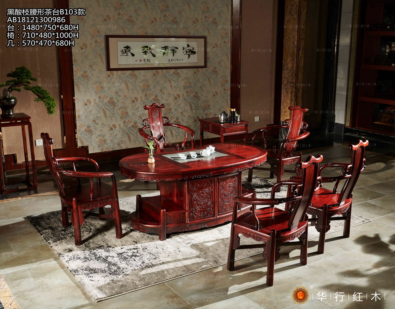 黑酸枝腰形茶臺B103款圖片及家具信息