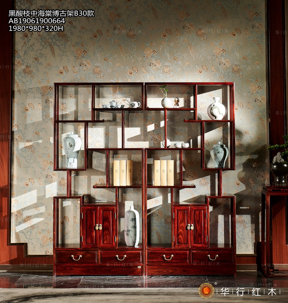 黑酸枝中海棠博古架B30款圖片及家具信息