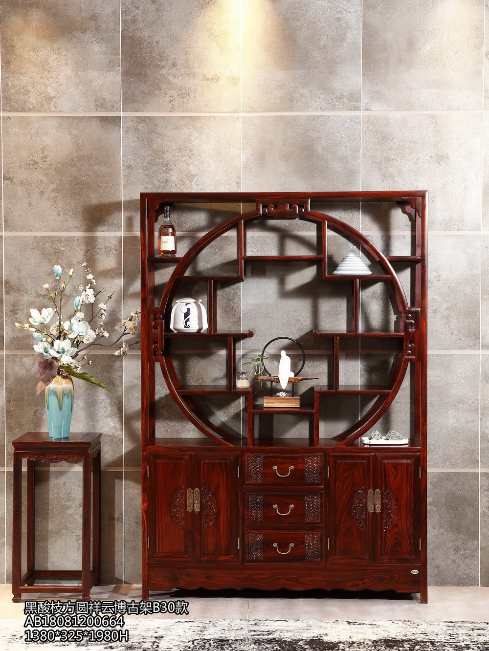 黑酸枝方圓祥云博古架B30款圖片及家具信息