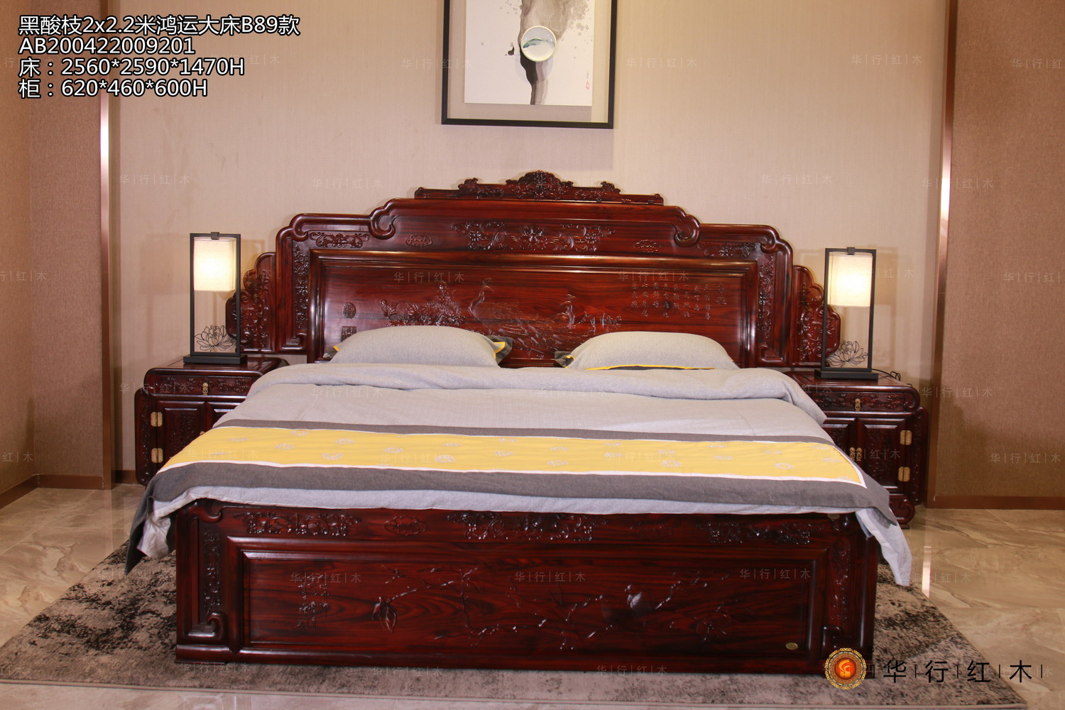 黑酸枝2x2.2米鴻運大床B89款圖片及家具信息