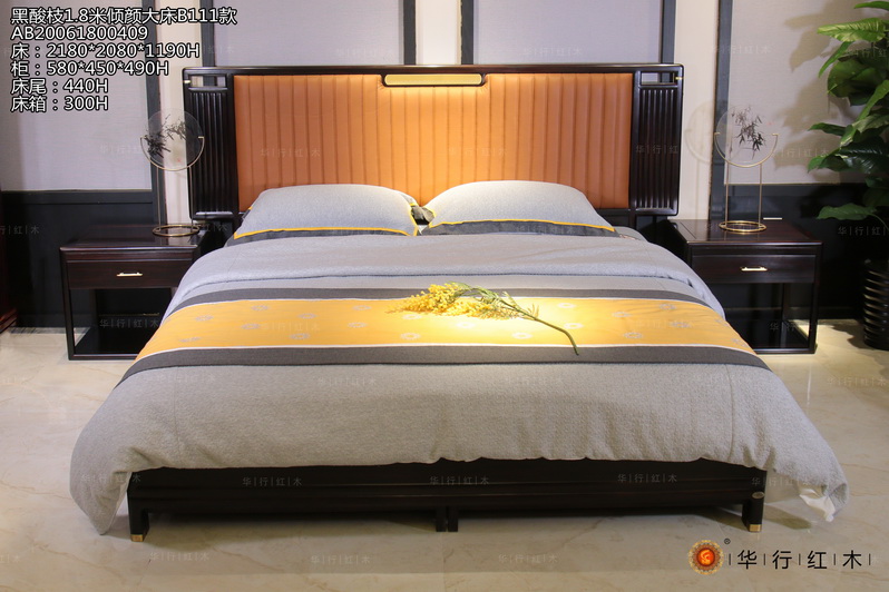 黑酸枝1.8米傾顏大床B111款圖片及家具信息