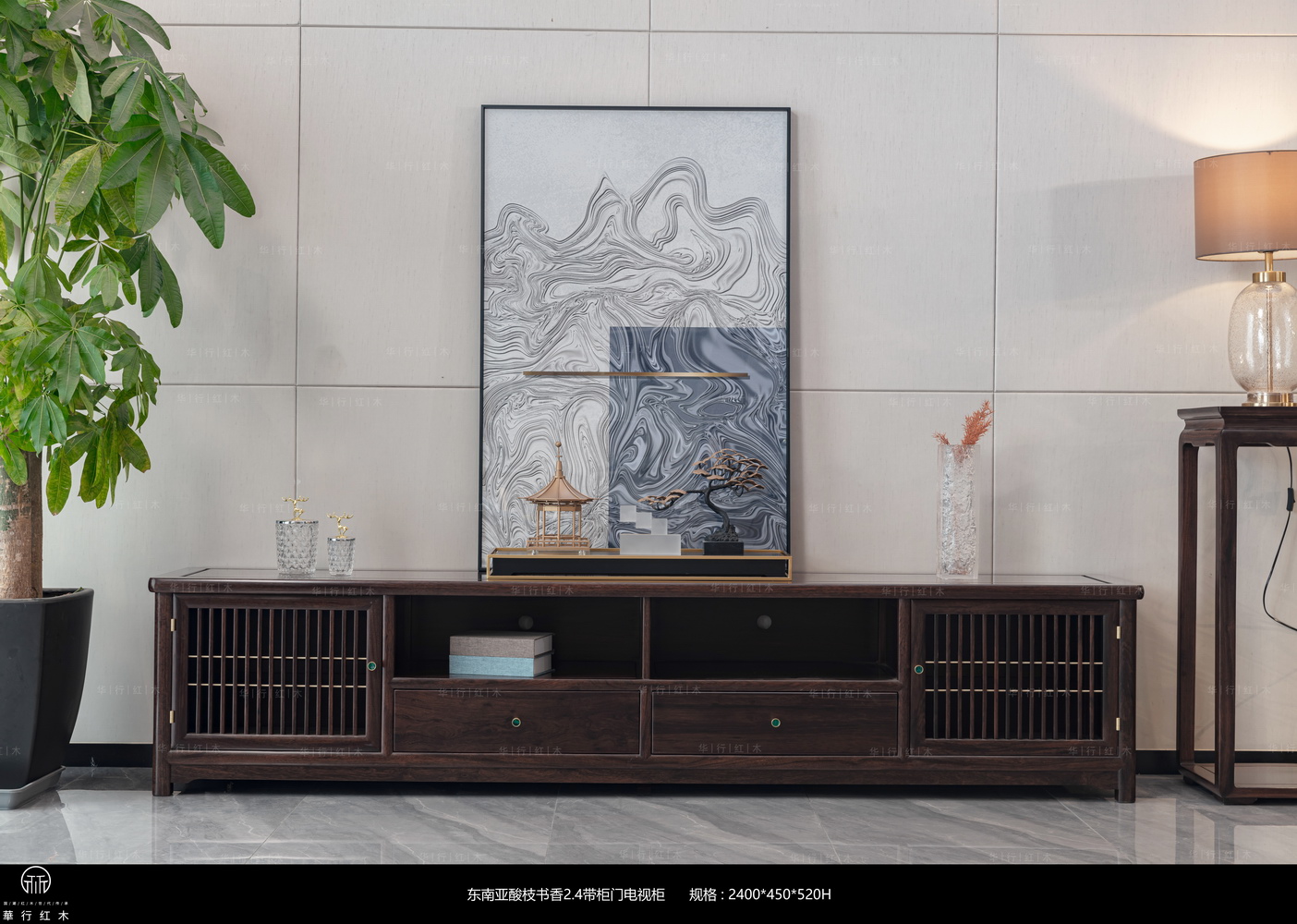 東南亞酸枝書香2.4帶柜門電視柜圖片及家具信息