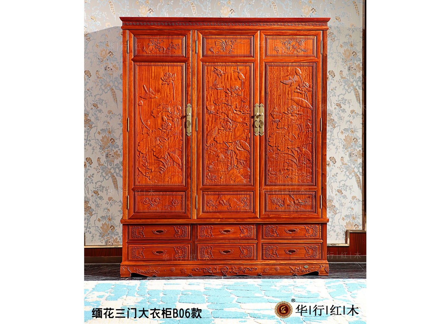 產(chǎn)品名稱:緬花三門大衣柜B06款